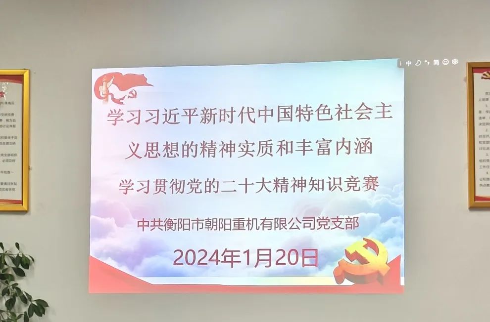近日,朝陽重機黨支部在公司總部隆重舉辦了一場別開生面的活動——組織學習主題教育和學習貫徹二十大精神知識競賽。